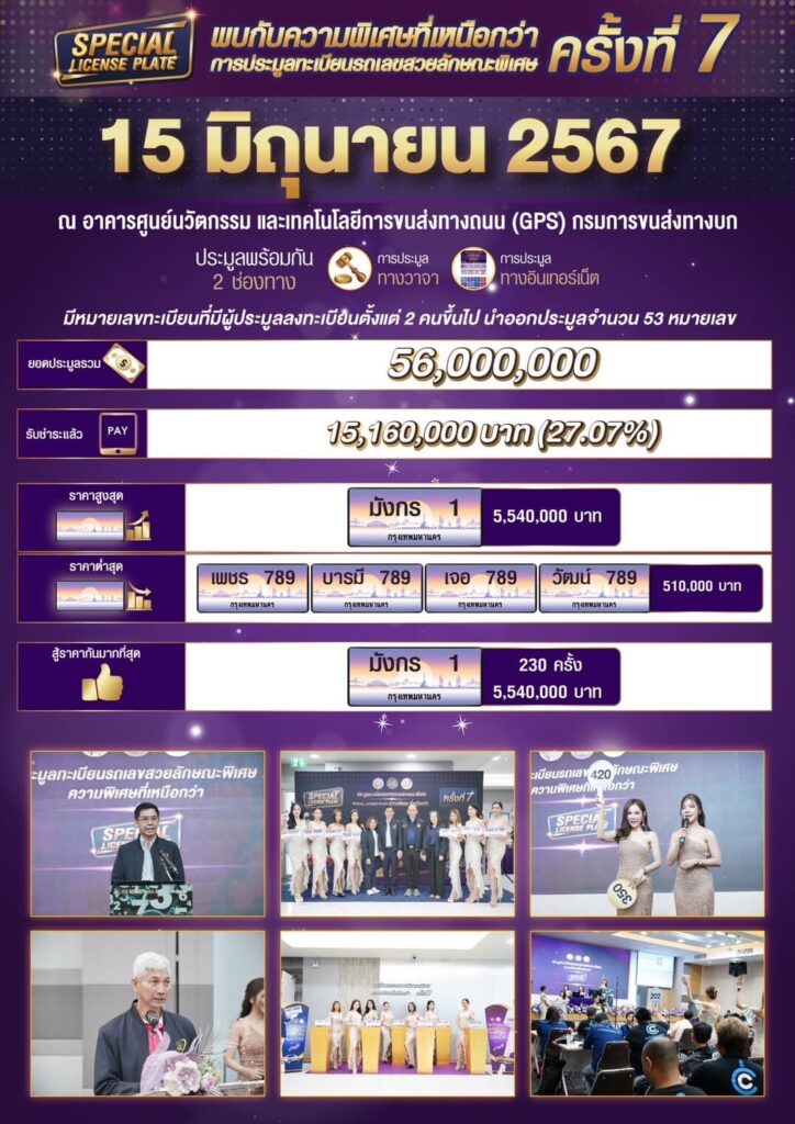 ผลการประมูลหมายเลขทะเบียนรถวันที่ 15 มิถุนายน 2567